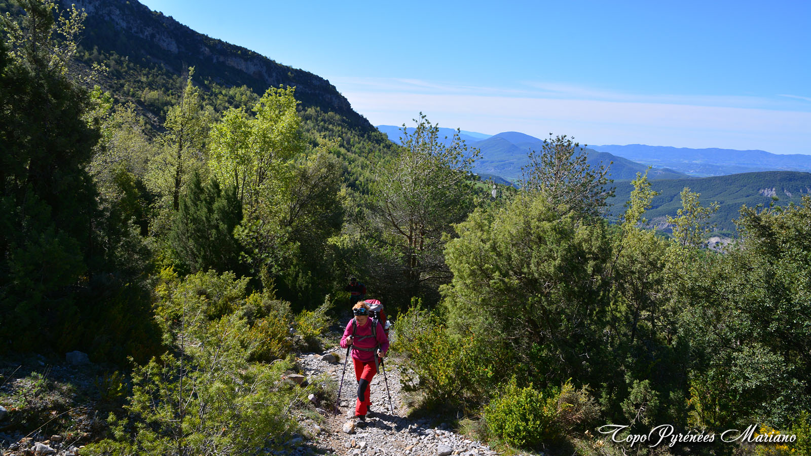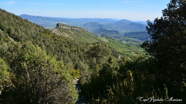 Vers 1280m, le sentier passe par un collet (Puyelo Arriba) d’où l’on peut voir une vue d’ensemble de la montée.