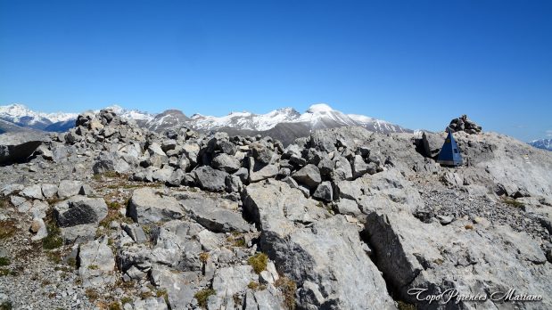 Peu de monde au sommet aujourd’hui à la Peña Montañesa (8 personnes au total) dont cette randonneuse accompagné de son compagnon (Louis) que je connais pour avoir fait une sortie tous les 3 au Pico de Vallibierna (3067m), le monde est petit !