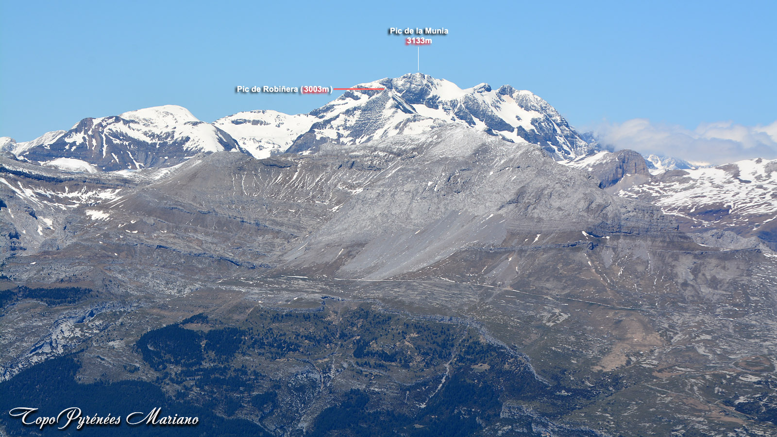 La Munia (3133m) avec devant lui le pic de la Robiñera (3003m).