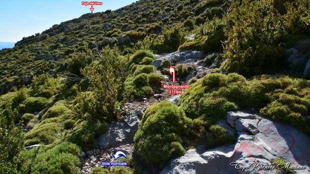 A partir de là, remonter le pierrier sur 80m (à droite en direction de l’Est)
