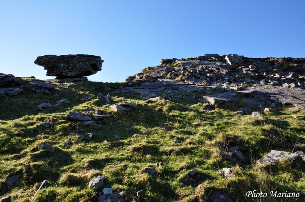 Nous sommes sur le fil de la crête, pour ceux qui ne veulent pas passer les amoncellements rocheux, descendez d’une dizaine de mètres pour éviter d’inutiles descentes.
