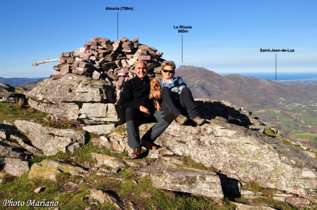 Photo de famille au sommet de l’Atxuria: Mariano, Marinette et la petite Athéna.
