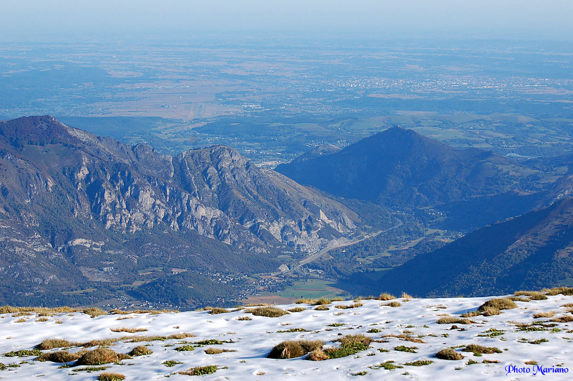 Vue sur la vallée, le Pibeste (1349m) et la ville de Tarbes.