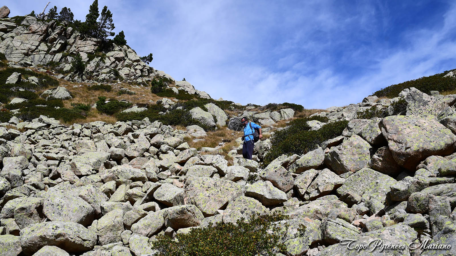 Petit pierrier à descendre, aucun problème en suivant les cairns.
