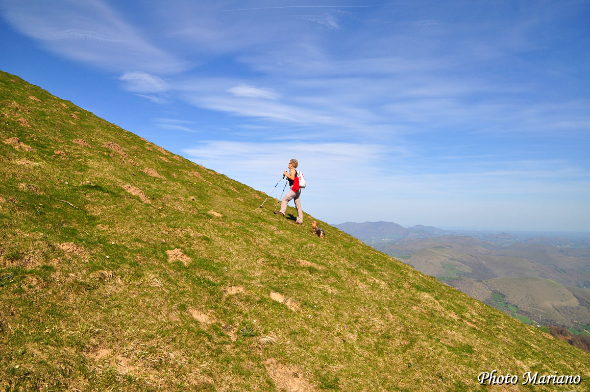 Superbe coin du pays-Basque. Ayant travaillé quelques années à Larceveau, j’ai profité de ce pic pour m’y entraîner de différents façons: Trail,raquettes, ski de rando (en chopant les rares jours de grosse neige!), vélo. D’ailleurs pour les amateurs de la petite reine, la montée depuis Hosta est terrible! Toute proportions gardées, je le surnomme « le petit Ventoux », avec moins de caillasse!Pour la rando, l’idéal est de couper droit dans la pente depuis le col, en évitant la route, mais attention pentes raides!