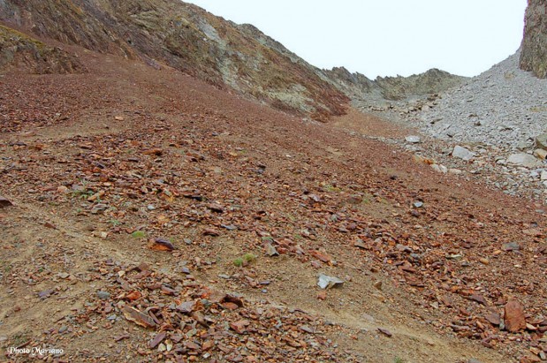 On arrive vers 2400m face au rebord d’une large cuvette parsemée de gros blocs.