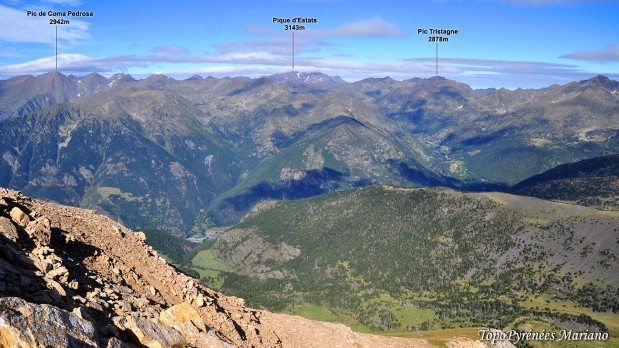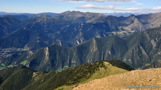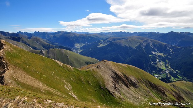 Du Pic Carrol (2317m) au Bony Saloria (2789m) avec la vallée et ses villages de Sispony, Massana et Segudet .