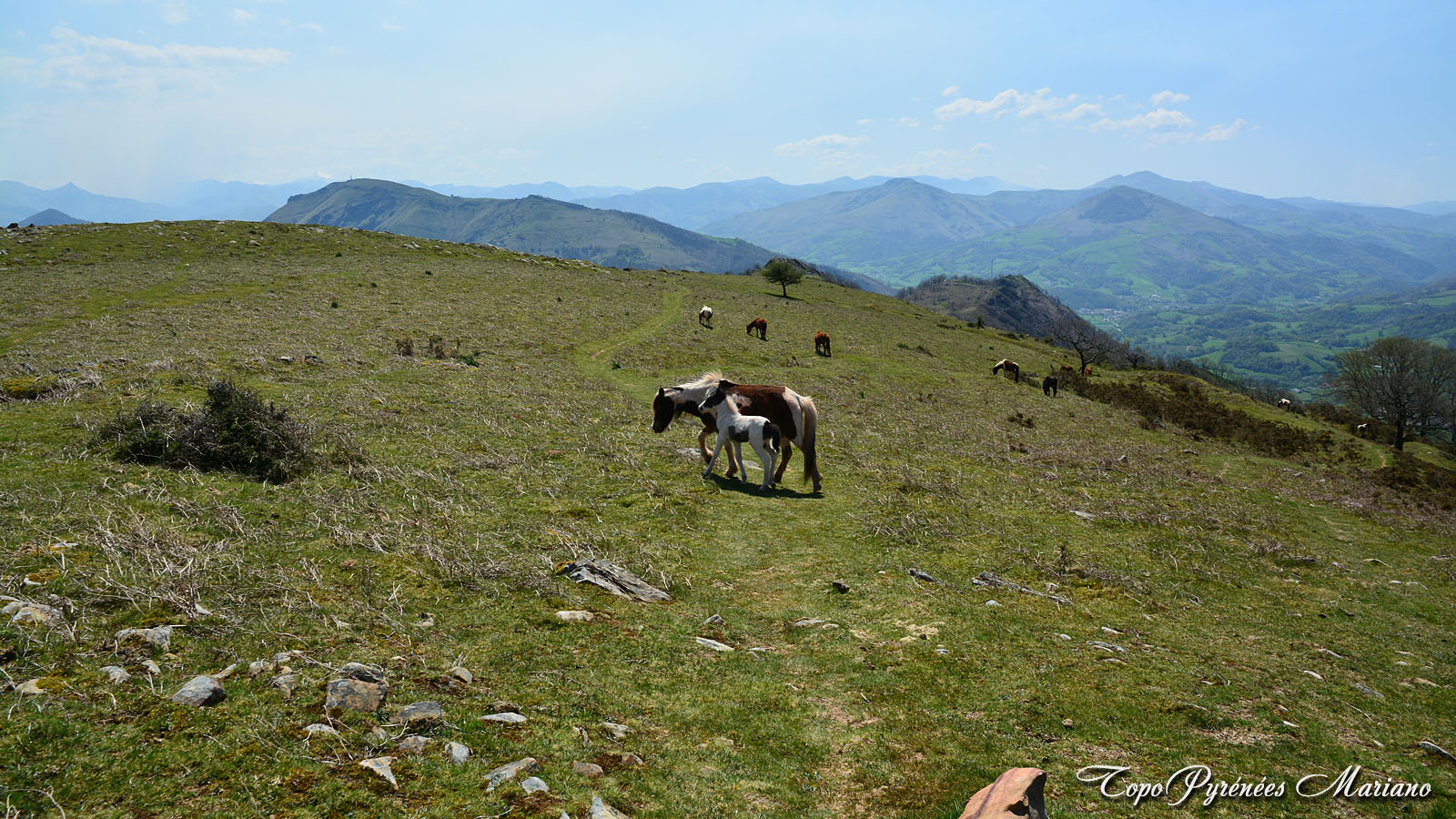 Pour ceux qui ne font que la petite boucle, revenir en arrière jusqu’au col d’Harretxeko Borda (620m) et suivre la piste descendant vers l’Est.