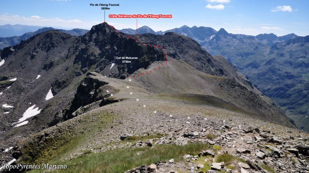 Difficultés: Montée au col Malcaras très raide, rester bien sur la goulotte et non sur l’herbe, risque de glissage ! La crête aérienne du versant Nord menant au Pic de l’étang Fourcat, demande de l’attention, à ne faire que par beau temps !