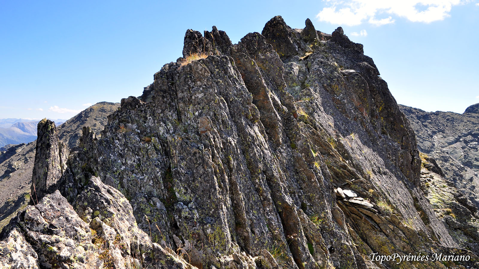 La crête aérienne déchiquetée menant au sommet du Pic de l’Etang Fourcat (2859m).