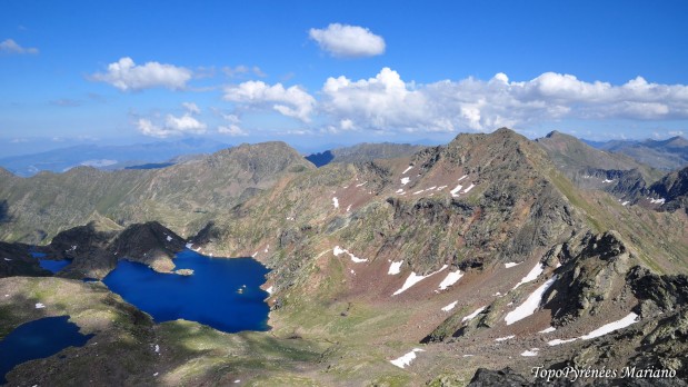 Vue sur les lacs depuis la crête du versant Sud du pic de l’Etang Fourcat.