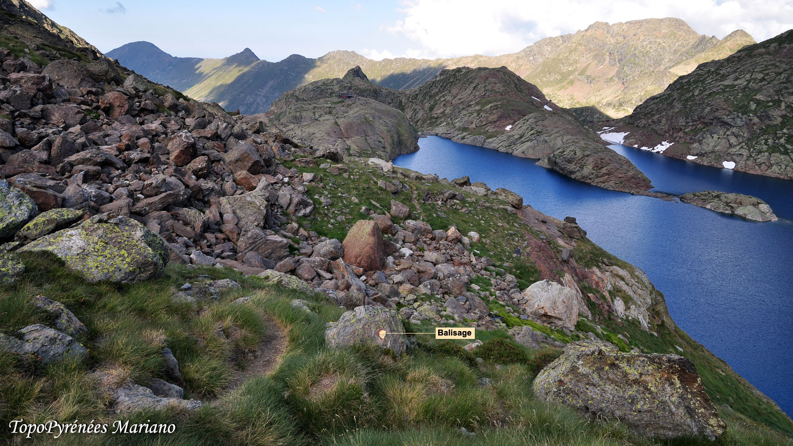Au début le sentier est bien marqué dans la pierraille, il se perd un peu par la suite, mais sans conséquences.