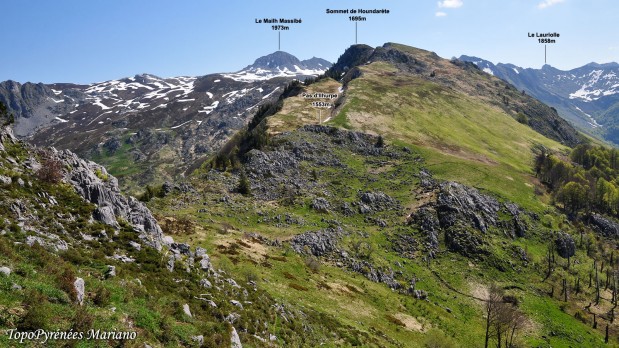 Sommet qui se fait à 98% par le versant Sud-Ouest depuis table d’orientation (670m) du village de Bedous.
