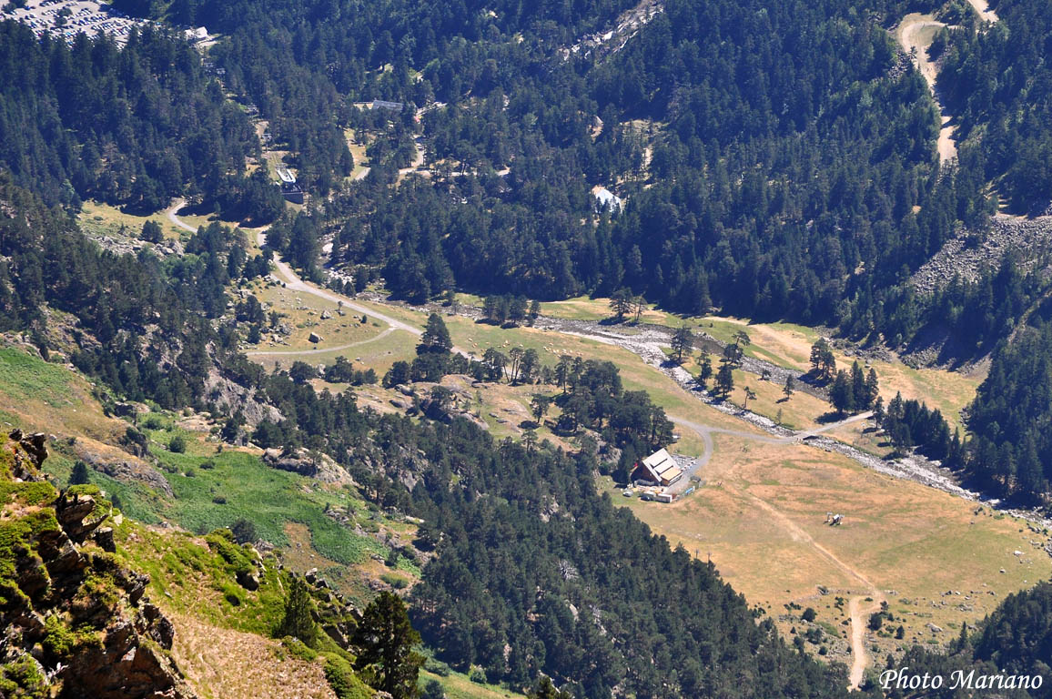 Vue sur la vallée du Marcadau et le parking du pont d’Espagne.