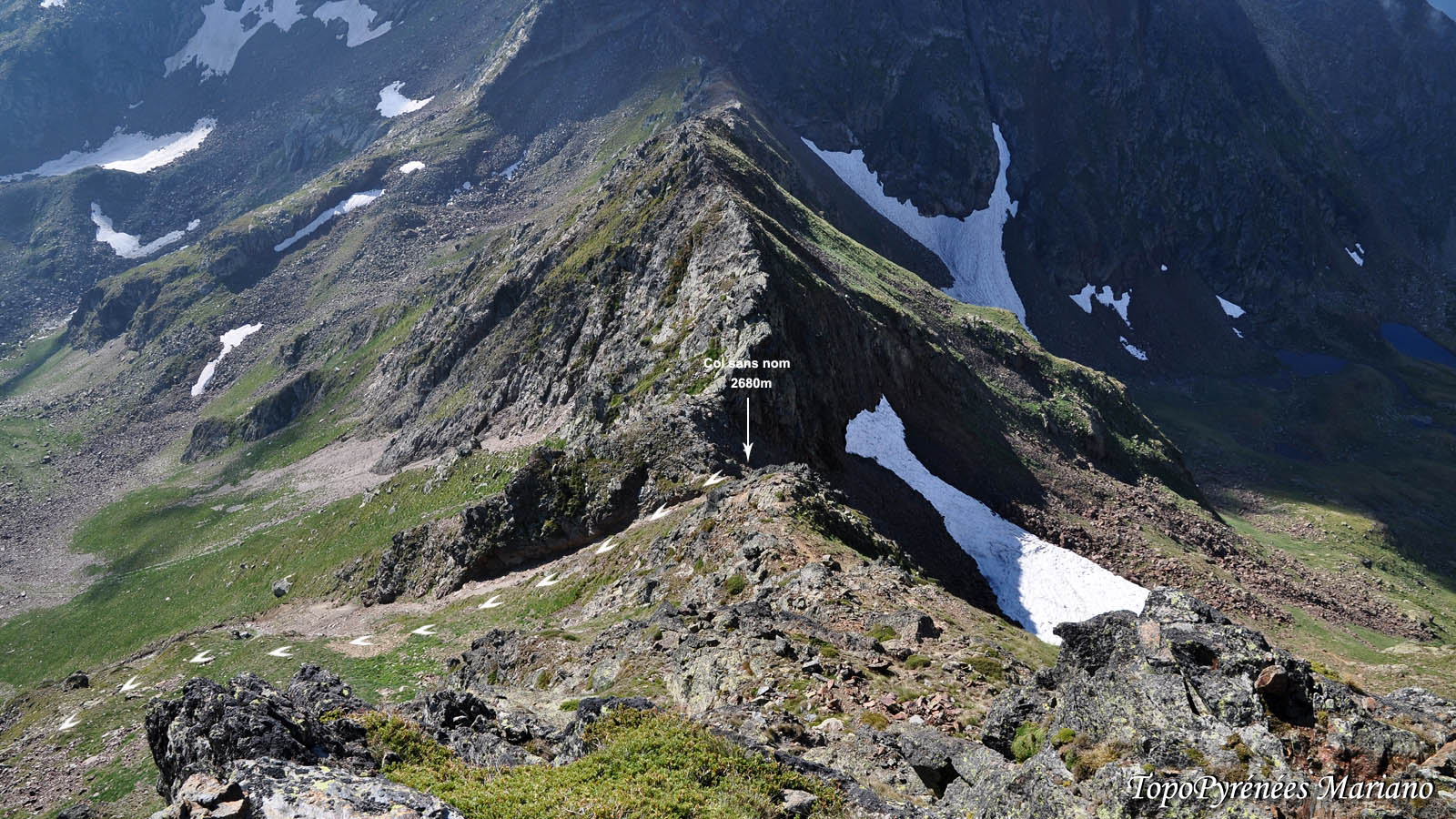 Depuis le col, l’itinéraire de descente depuis le sommet.