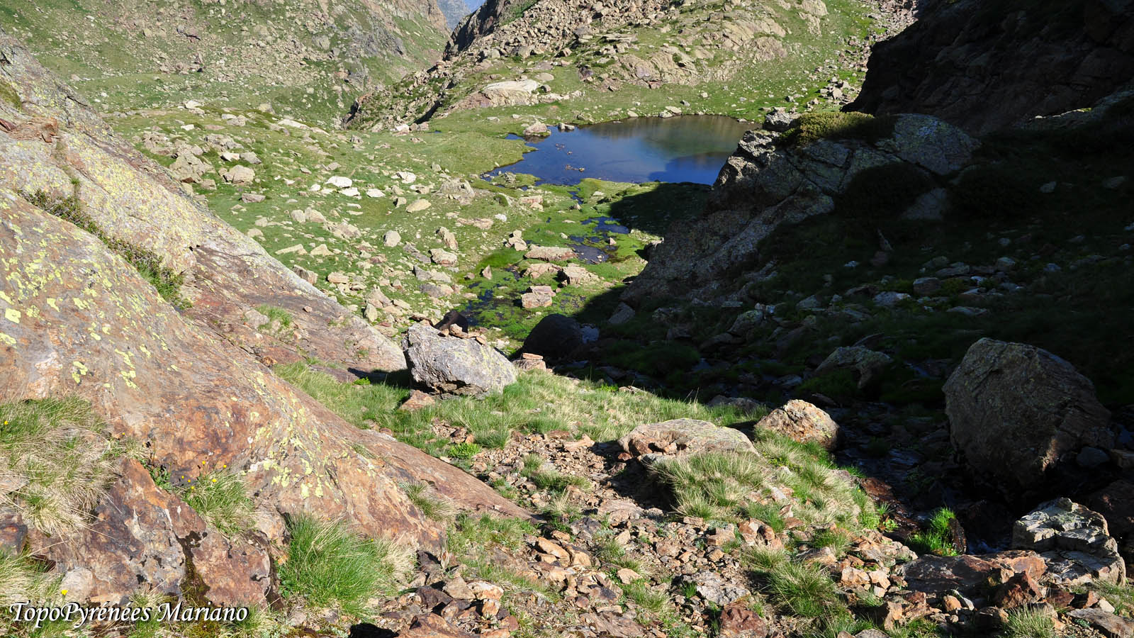 puis descendre hors sentier soit sur la pente herbeuse ou dans le pierrier de droite.
