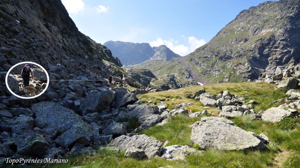 Pour descendre au niveau du petit laquet, descendre par la droite le long du ruisseau (cairns).