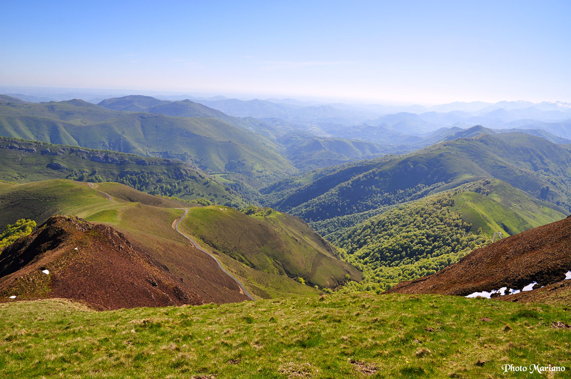 On aperçoit la départementale D19 en bas de la photo, route qui mène au col de Bagargiak.