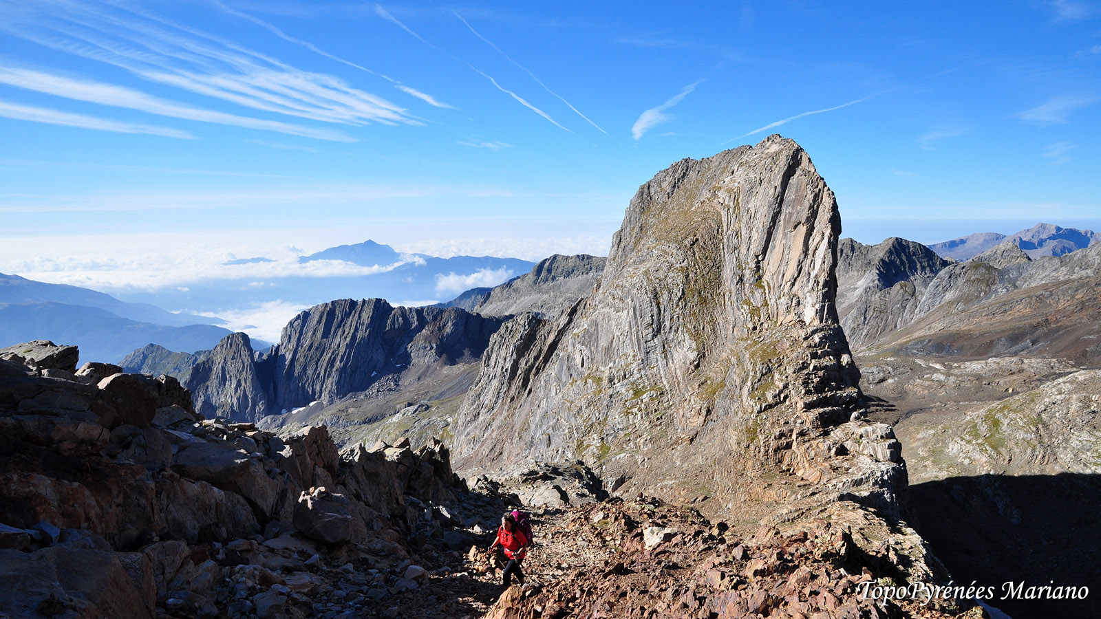 Par beau temps et en l’absence de neige, sa voie normale ne présente pas de difficultés majeures, il est certainement un des 3000 les plus facile d’accès depuis le refuge Ángel Orús.
