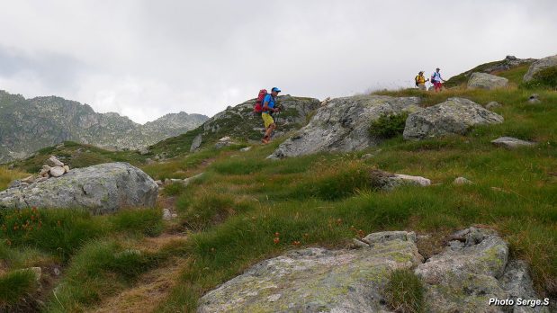 Sachez tout de même que malgré les nombreux cairns qui jalonnent le parcours il vous sera difficile de vous perdre, en gros après le Lac Det Mail (2340m) que l’on contourne par sa gauche, il faudra aller en direction du Sud-Est entre les lacs vert et bleu.