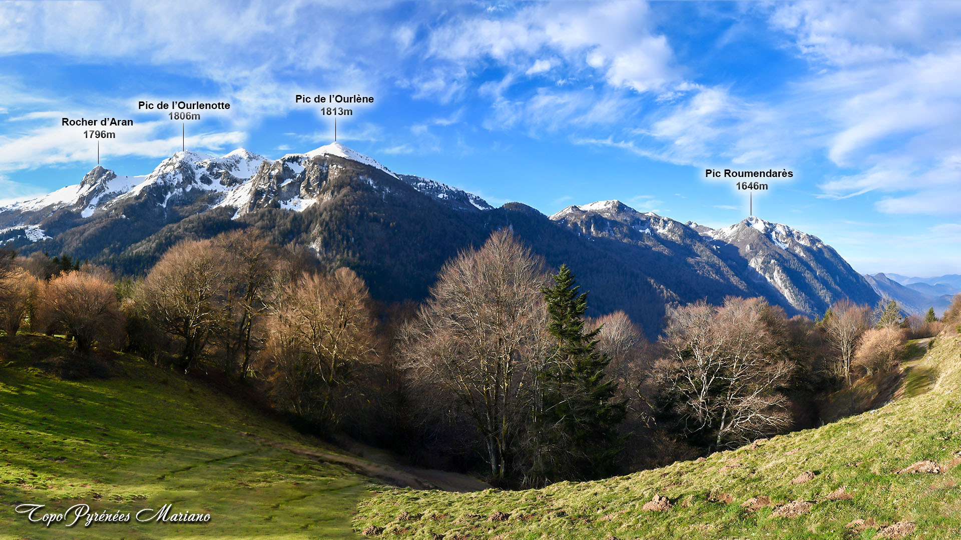 Belle vue sur le Rocher d’Aran (1796m), Ourlenotte (1806m) et Ourlène (1813m).