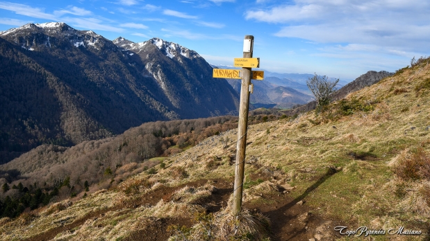 10mn après le col de Marie Blanque, une bifurcation, laisser l’embranchement de droite, et continuer sur le chemin de gauche.