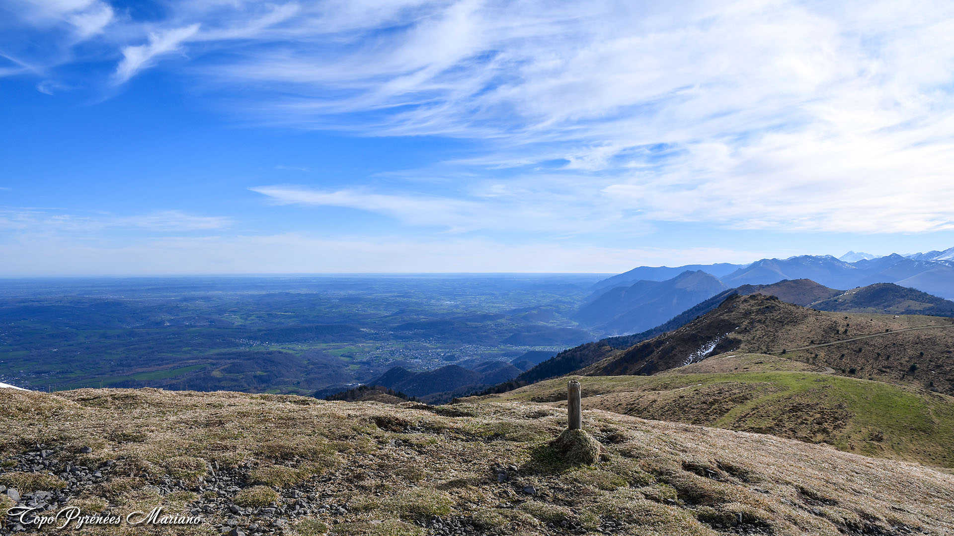 Juste avant le sommet, on peut apercevoir la ville de Pau au loin.