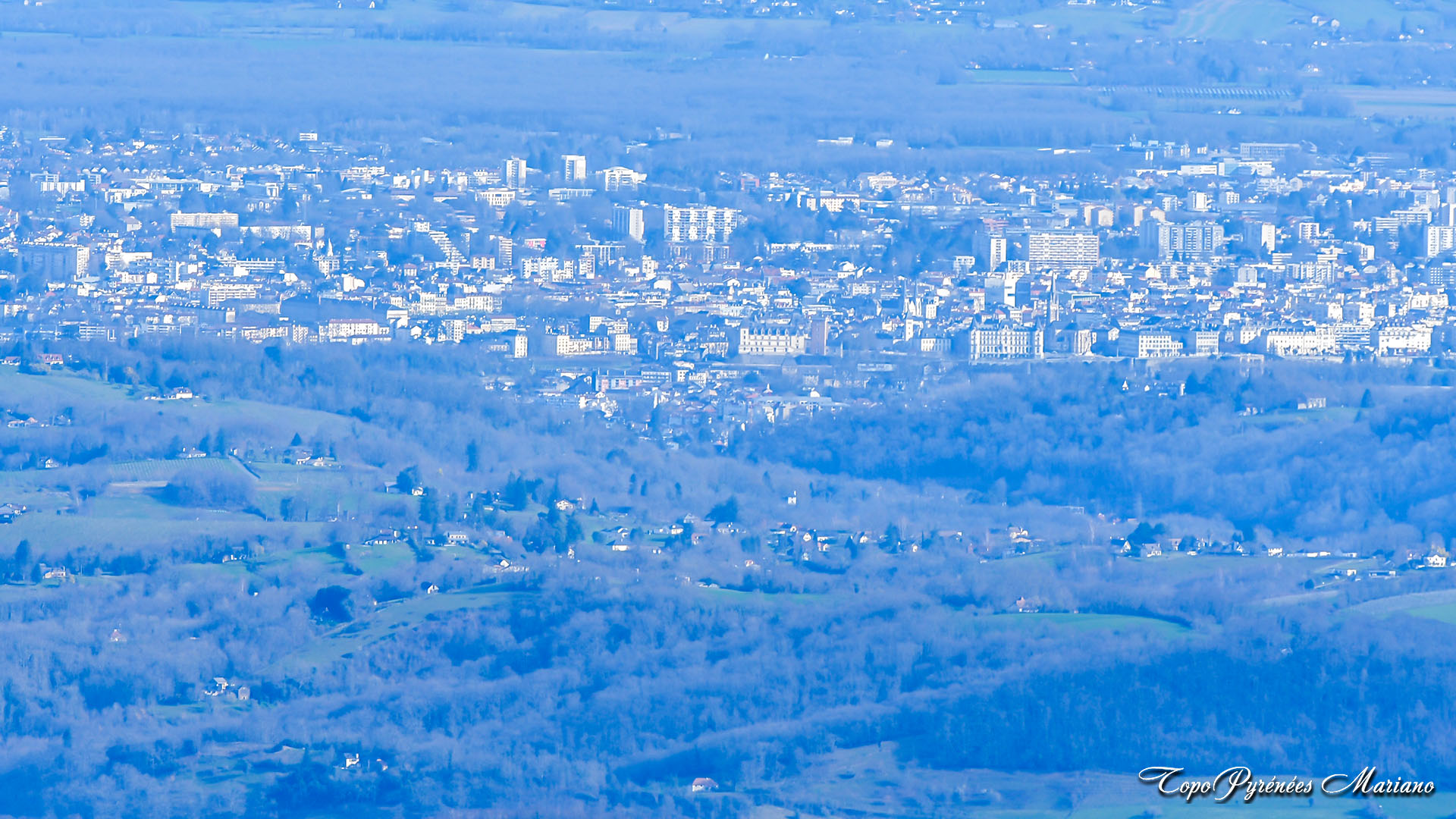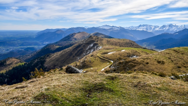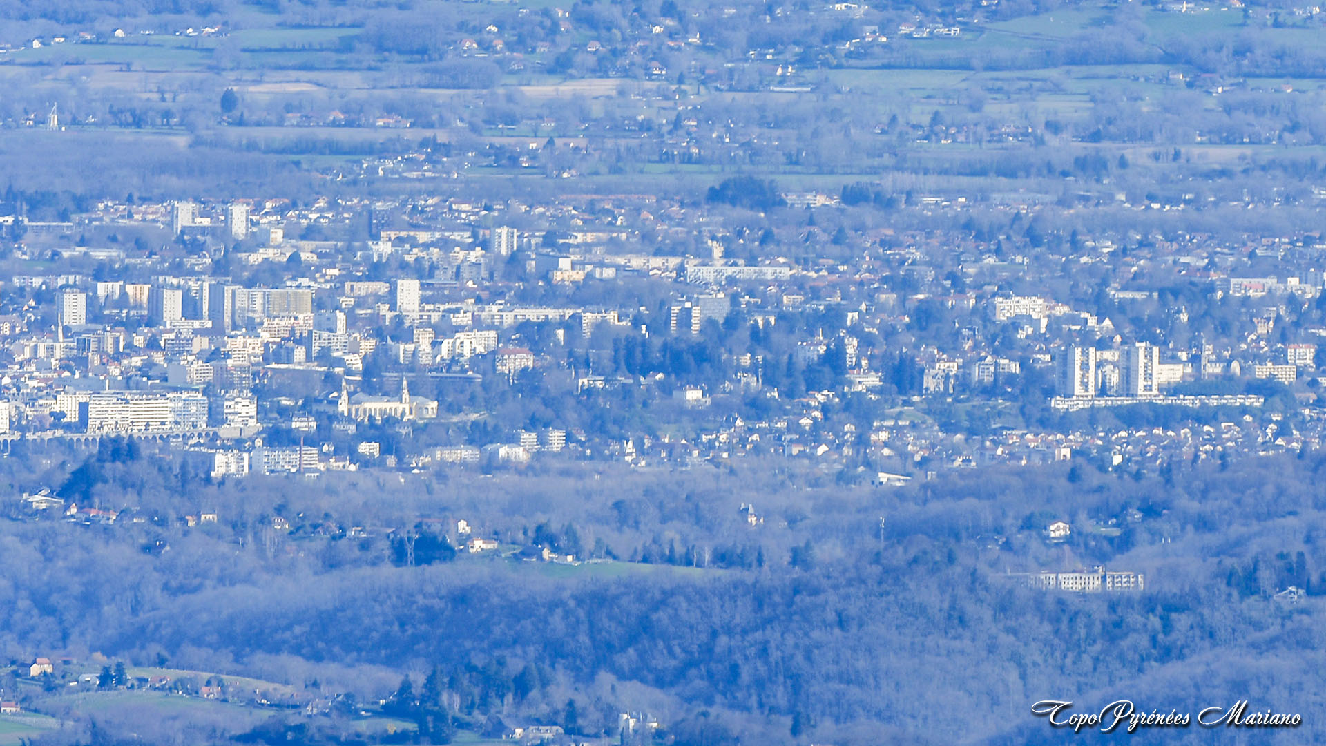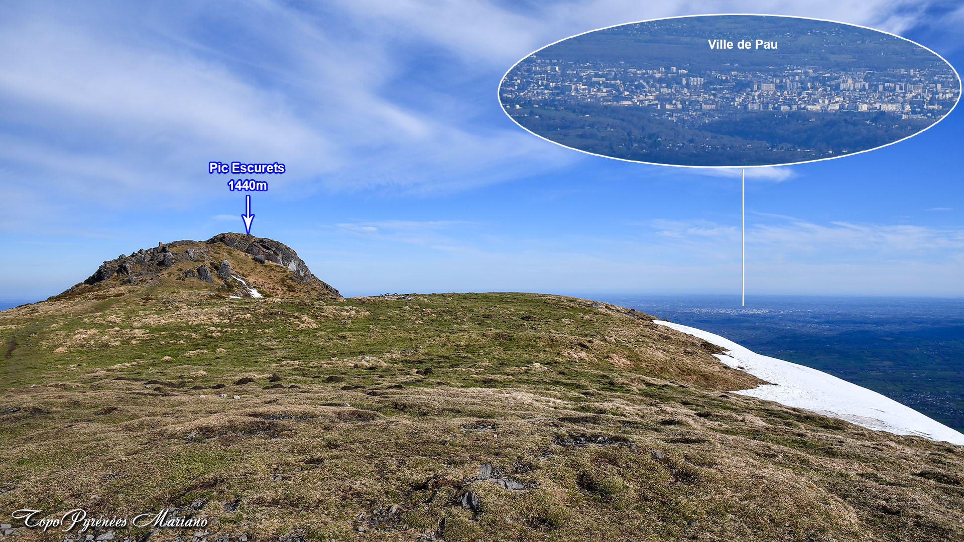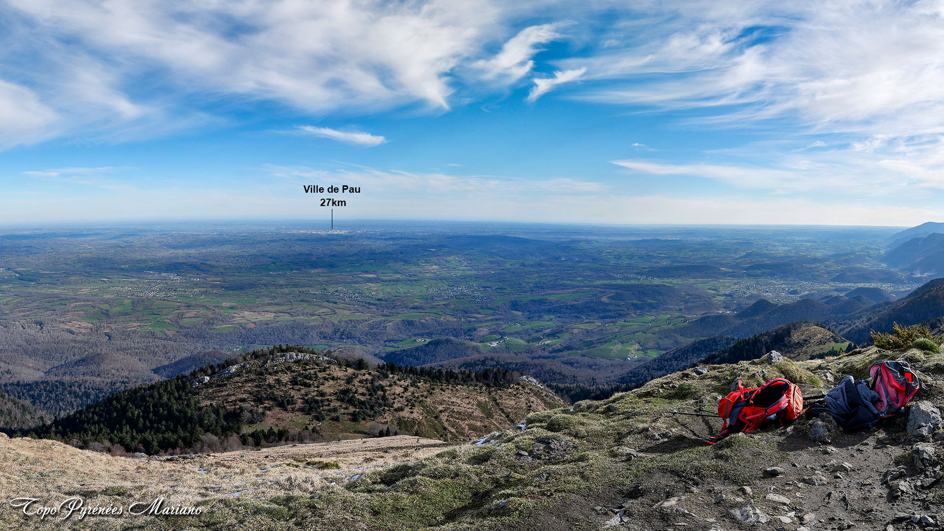 À proximité du sommet, nous pouvons voir au loin la ville de Pau.