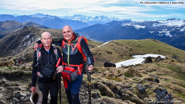 Michel et Mariano au sommet du pic d’Escurets (1h20 pauses comprises).