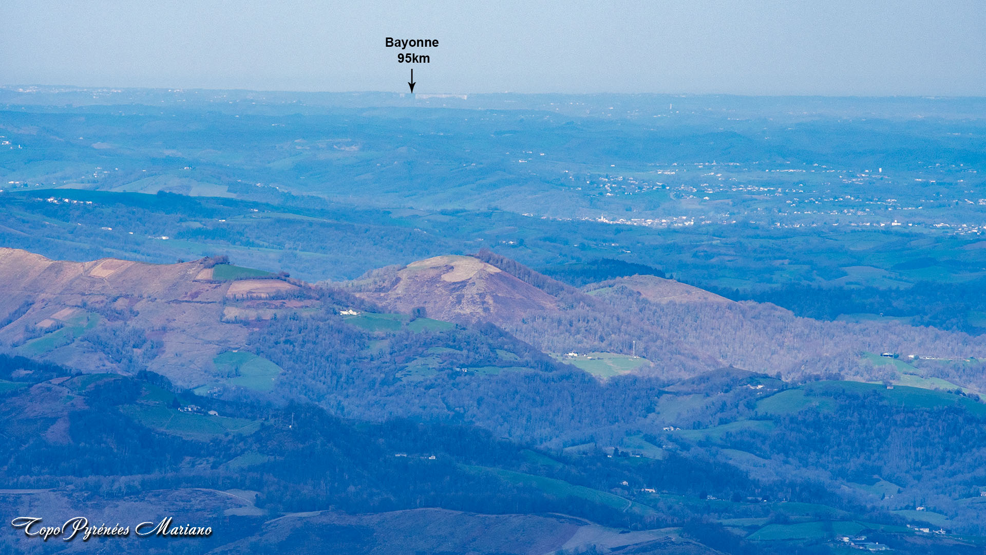 La Rhune (905m) distante de 95 kilomètres).