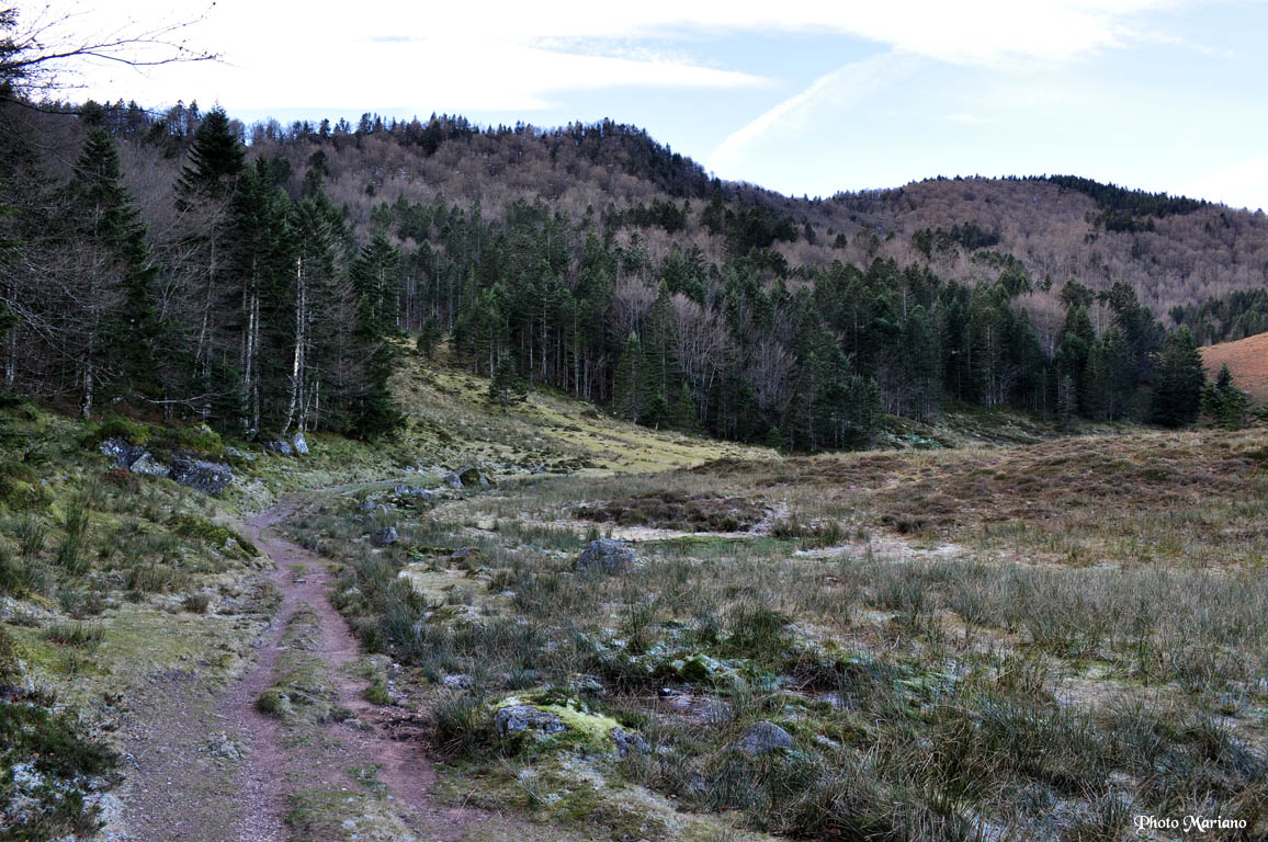 Pour rejoindre une piste et le col de Hournères (1473m). Le pic d’Issarbe est tout droit juste 200m derrière cette butte.