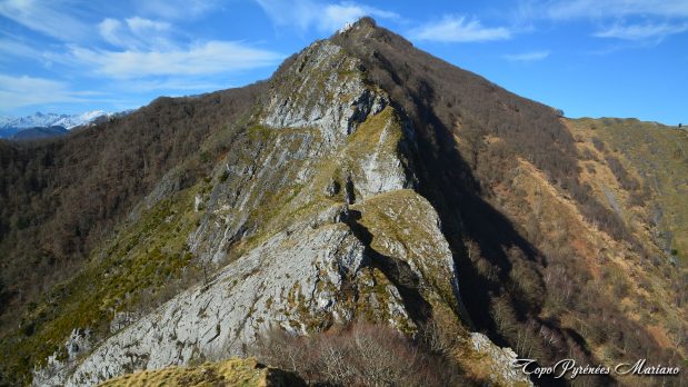 Le ressaut est passé avec une belle vue sur le Pic d’Alian (1089m).