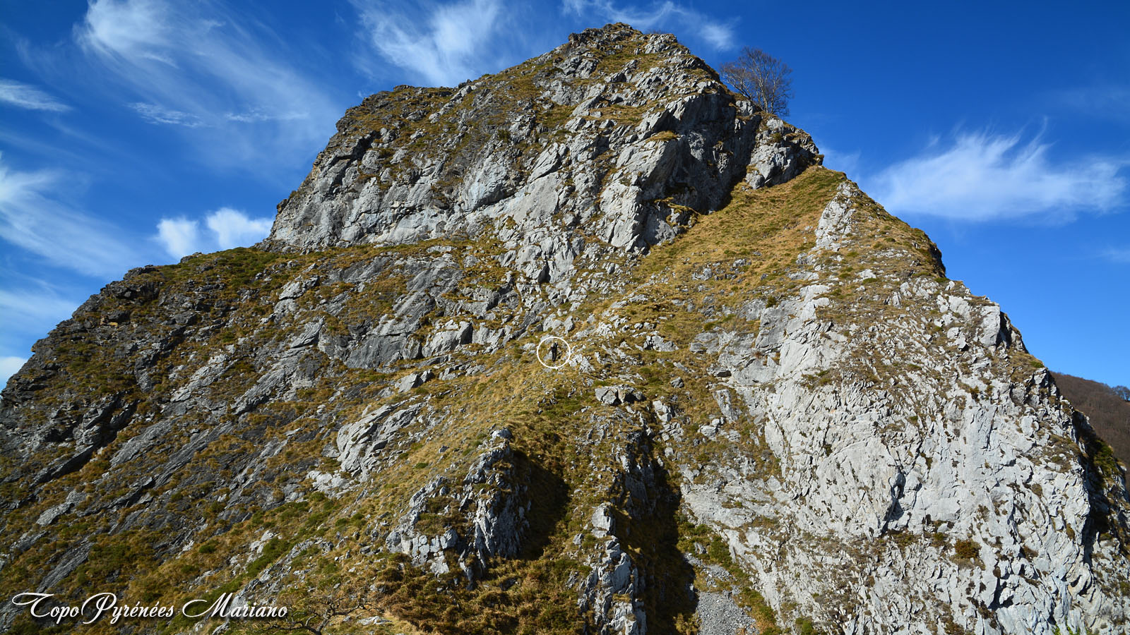 Depuis la brèche d’Alian (1000m), grimper ce petit ressaut dont la première partie est boisée.
