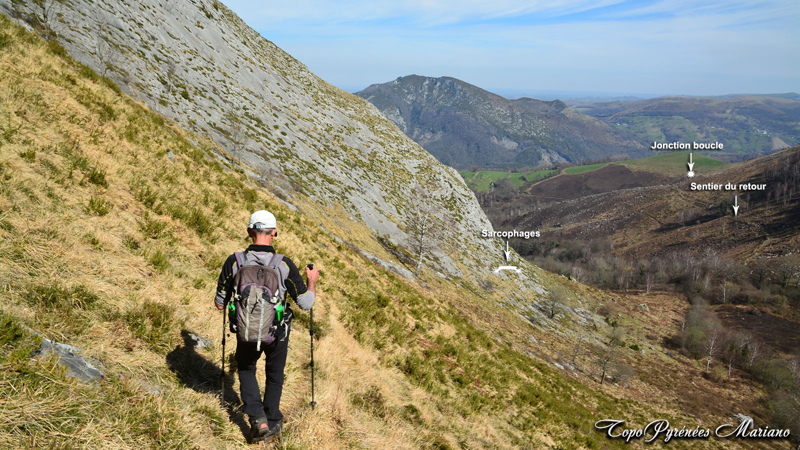 Merci pour ce vade me cum. Même si je m’en suis écarté ici ou là et malgré moi, redessinant ce terrain d’aventure : d’abord, il m’a fallu grimper au pic d’Alian via des dalles inclinées, pour avoir trop contourné celui-ci. Entre pentes herbeuses et arbres, le fil de vie était bien celui des crêtes, ensuite ; cela me rappelait un peu le Néron, au-dessus de Grenoble… un terrain ludique, mais à ne pas recommander au simple randonneur : trop de gaz par endroits ! La redescente du Pibeste vers le col du mail d’Arreau traduit bien la raideur des pentes surplombées. La fin du parcours, via une source dite de « Tarius… 200 » (?! selon le gravage dans la pierre) m’a renvoyé en terrain inconnu : il m’a fallu déchiffrer les plans d’inclinaison, les croisement de thalvegs, les traces d’animaux pour ne pas me retrouver embarrassé au bas d’une pente avant la nuit. Bref, une vraie découverte hivernale, sans la neige qui n’est malheureusement plus au rendez-vous de Noël.