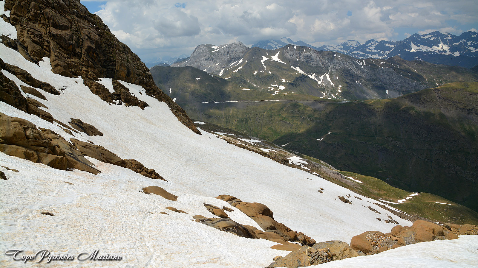 Col de Boucharo (2270m) avec une belle vue sur les sommets espagnols comme la Tendeñera (2853m).