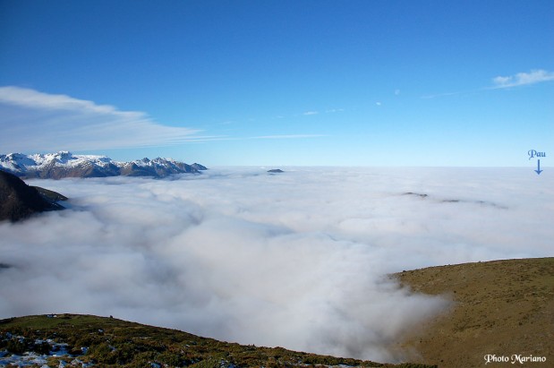 Nous ne verrons pas la ville de Pau aujourd’hui avec cette mer de nuages.