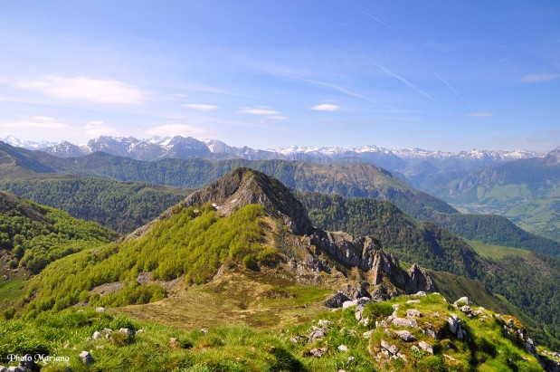 Redouté des cyclistes, la D924 reliant Escot au col de Marie-Blanque est bordée au Sud par une élégante crête calcaire dont les sommets Est (Rocher d’Aran, Ourlenotte, Ourlène) sont assez bien connus et fréquentés par les Palois. Les pics situés plus à l’Ouest, ont des belvédères magnifiques sur le massif du pic d’Anie et sur la chaîne frontière. Ils sont par contre un peu délaissés, peut-être parce qu’ils sont peu aisés à atteindre en partant de la vallée d’Aspe.