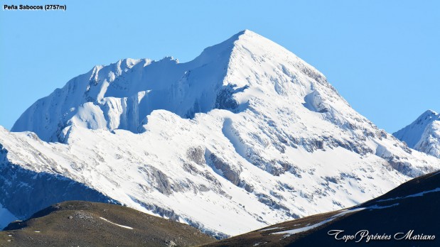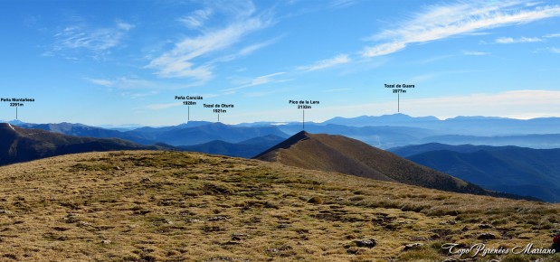Devant nous le sommet du pic de la Lera avec en toile de fond la Collarada (2886m).
