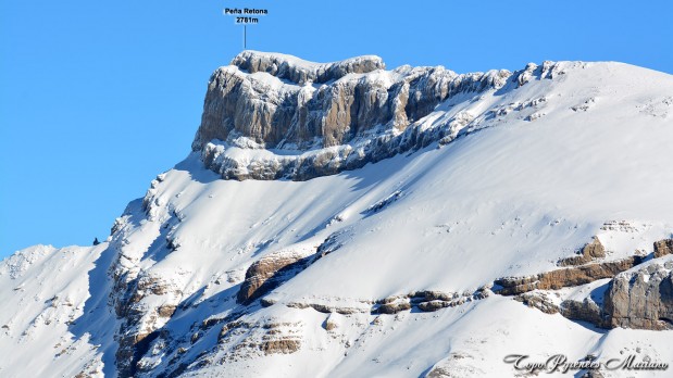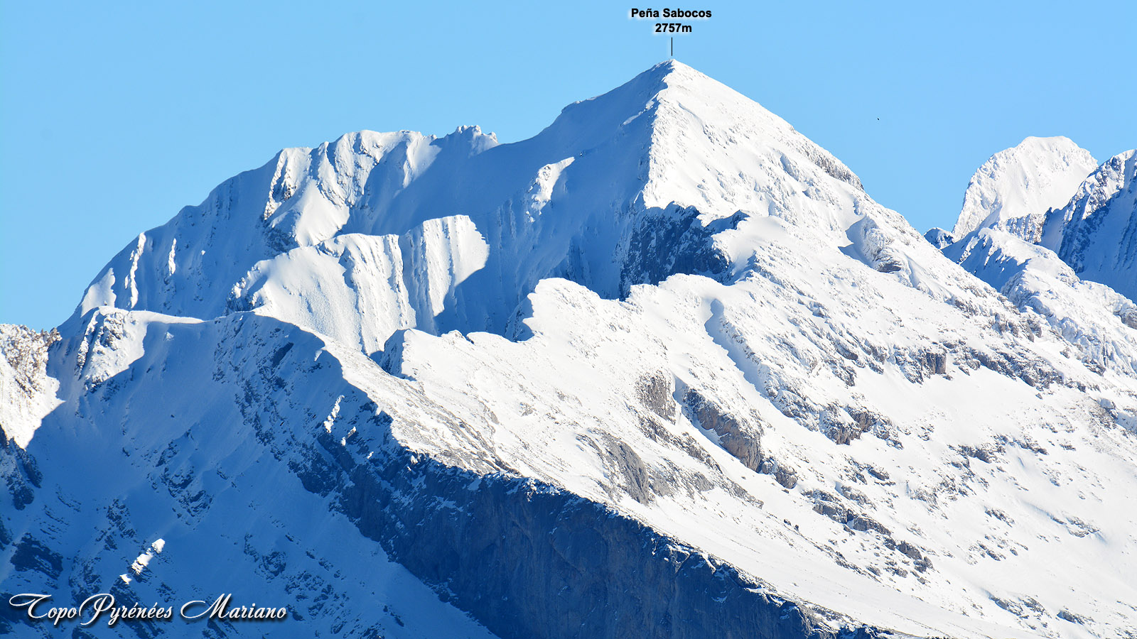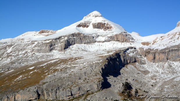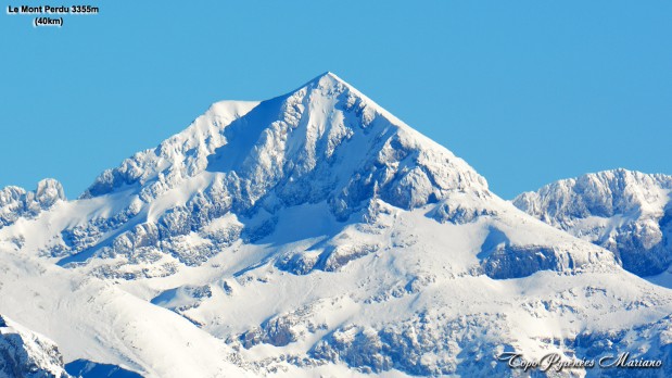 Zoom sur le Mont Perdu (3355m) distant de 40km.