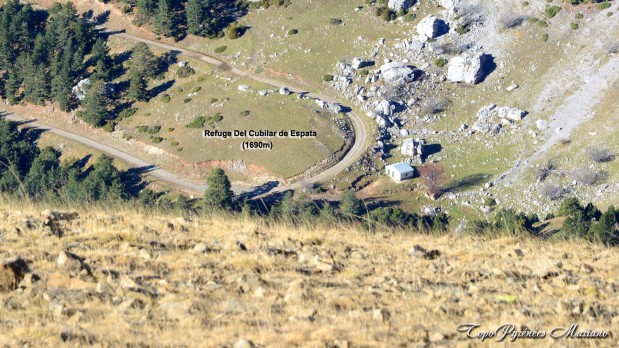 Vue plongeante sur le refuge del Cubilar de Espata (1690m).
