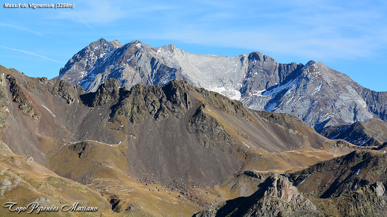 Le massif du Vignemale (3298m) depuis ce joli promontoire (2420m).
