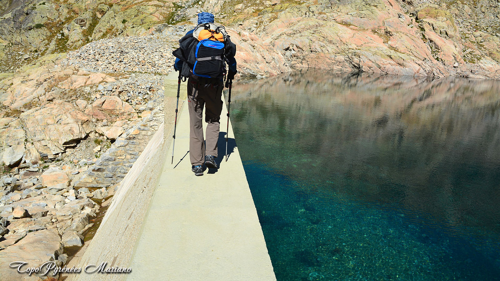 nous passons par le mur du barrage pour aller faire un petit tour au refuge de Bachimaña Bajo.