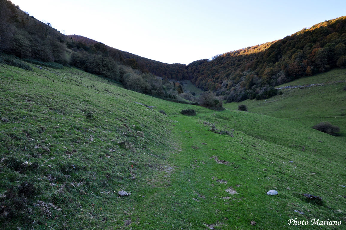 Depuis le vallon herbeux, s’orienter vers la droite en direction de l’Ouest.