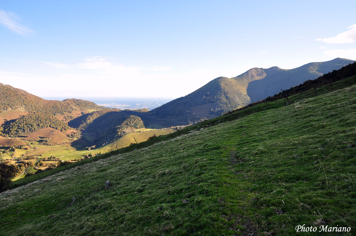 avec devant moi le plateau du Bénou et le village de Bielle.