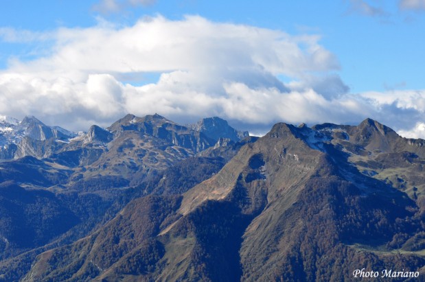 Belle vue derrière moi sur les Cinq Monts et le pic de Gerbe 1901m.