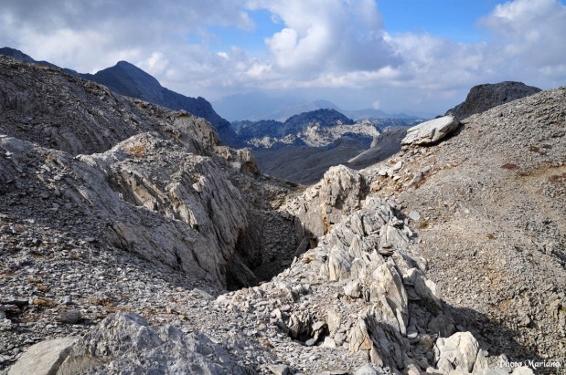Il faut parfois redescendre de quelques mètres dans cette zone de lapiaz où il faut rester attentif.