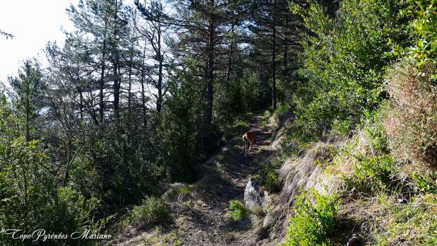 laisser la piste descendre à gauche et monter à droite dans la forêt de pins (Est).
