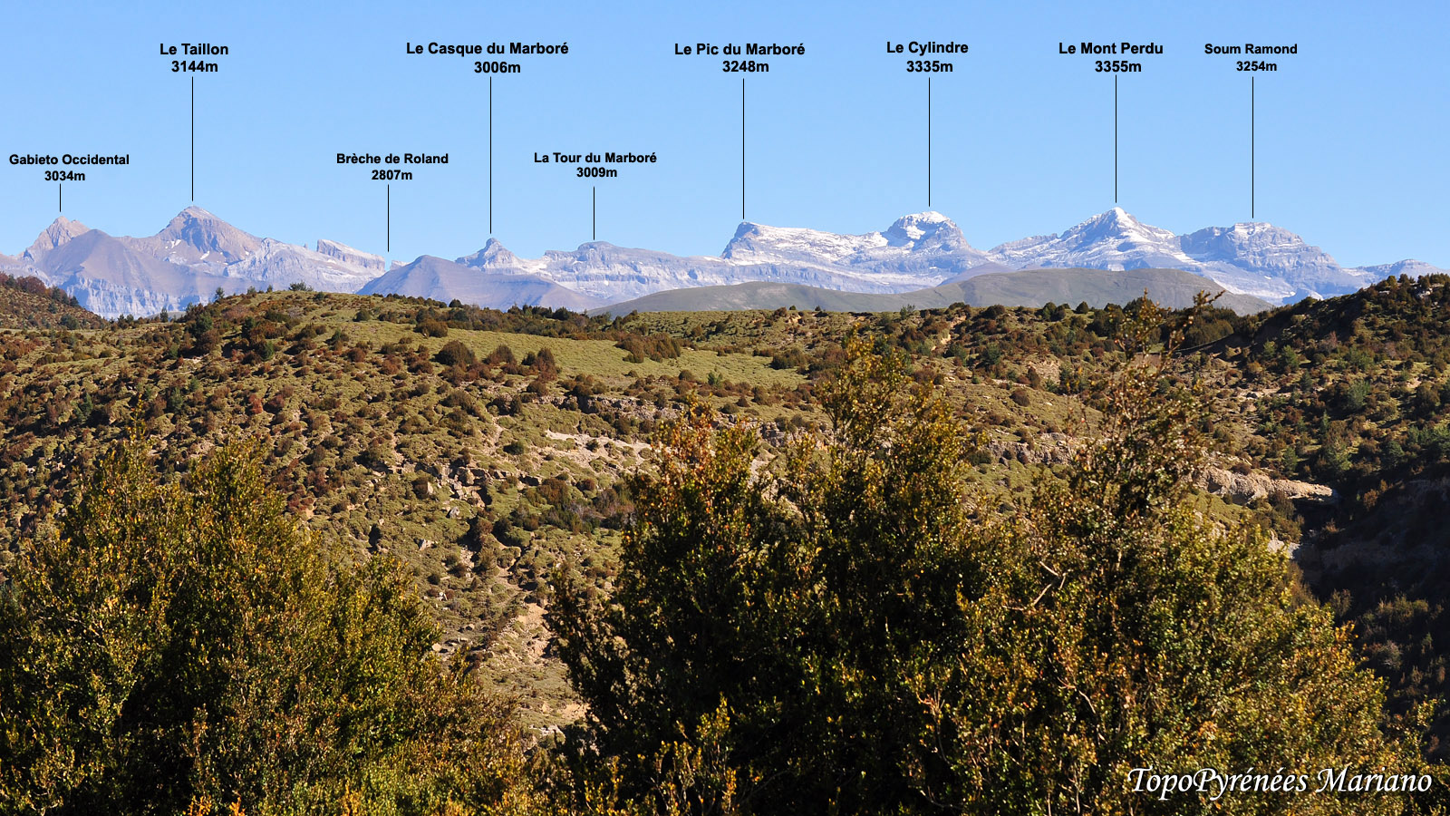Marboré (3248m), Cylindre (3335m) et Mont Perdu (3355m).