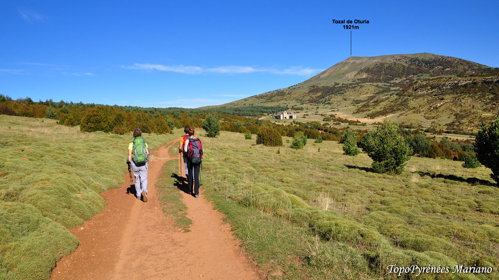 La piste tourne vers la gauche et nous mène au pied de la crête herbeuse montant au Tozal de Oturia.