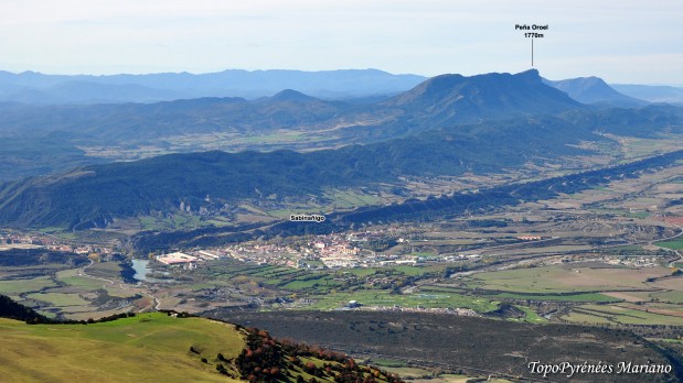 Vue sur la vallée avec au loin la Peña Oroel (1770m).